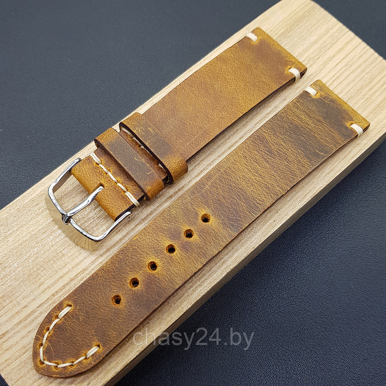 Ремешок рыже-коричневого цвета, гладкая кожа, ручной шов.